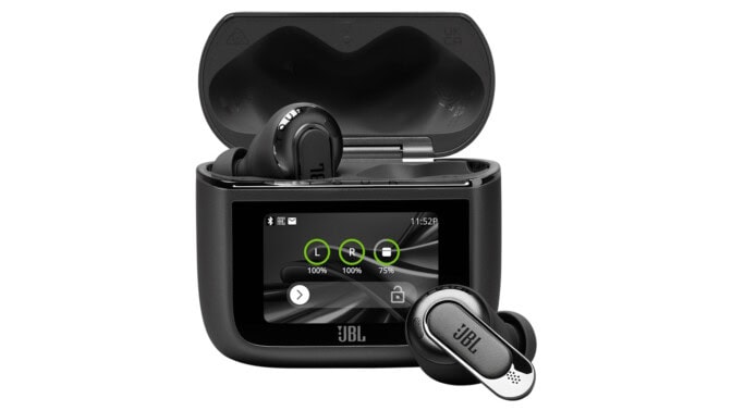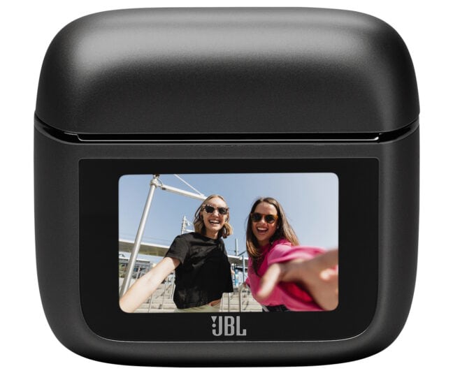 Mukana tuleva älykäs ja kosketusnäytöllinen latauskotelo on jotain, jonka JBL on esitellyt jo muutamissa aikaisemmissa nappikuulokemalleissaan. Kotelon kehitys jatkuu kuitenkin lupaavasti, ja tällä kertaa tarjolle tullut mahdollisuus käyttää sitä lähettimenä tekee siitä entistäkin monikäyttöisemmän. Latauskotelo kytkeytyy mukana tulevilla kaapeleilla mihin tahansa AUX (3,5 mm) tai USB-C-lähteeseen ja välittää äänen kuulokkeisiin. Tämä ominaisuus mahdollistaa esimerkiksi kuulokkeiden liittämisen televisioon, jossa on kuulokeliitäntä, mutta ei Bluetooth-yhteyttä.