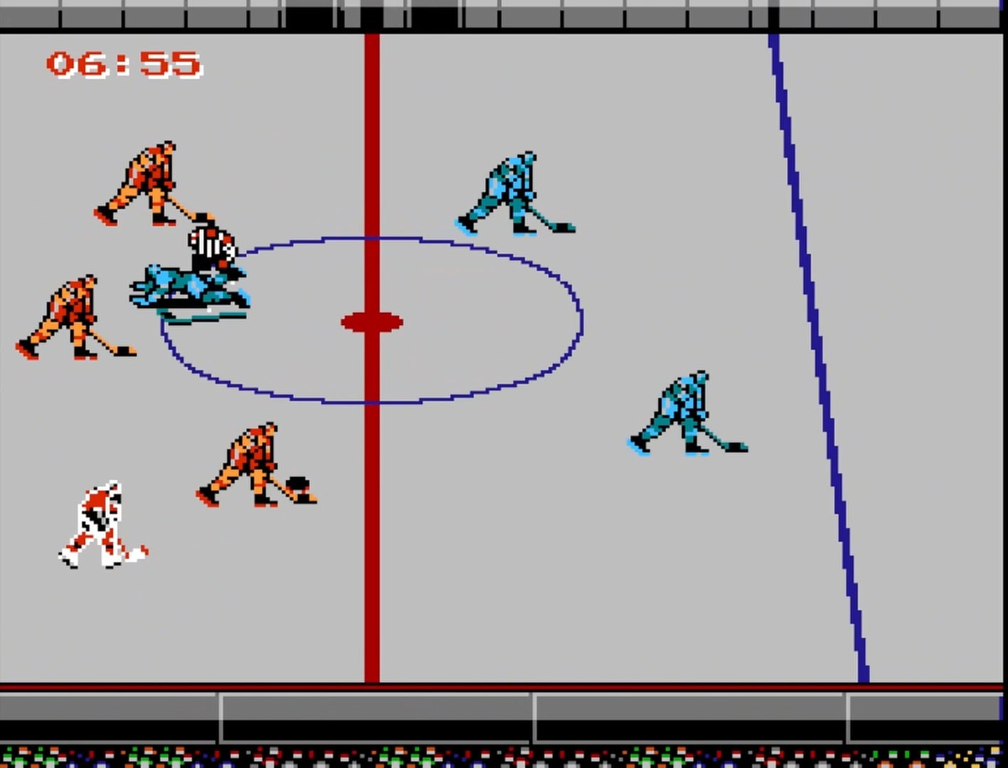 Koska nämä pikkuiset kiekkoilijat vielä ottavat kirjaimellisesti ensimmäisiä askeleitaan kaukaloissa, on ihan ymmärrettävää ja okei, että pelaaminen on lähinnä sitä, että kaikki seisovat milloin missäkin katsomassa, kun yksi tyyppi kuskaa kiekkoa kohti maalia ja että vedot menevät välillä kolme metriä ohi maalista. Blades of Steel kuitenkin teoriassa kuvaa ammattilaisten pelaamaa jääkiekkoa, joten miksi ihmeessä se näyttää samalta?