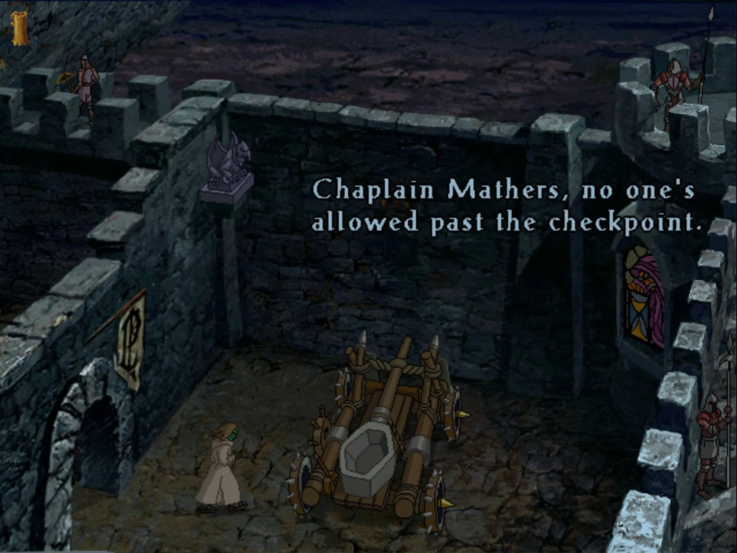 Esimerkiksi pelin alussa Thrallin täytyy naamioida itsensä näyttämään vankilaa johtavalta papilta, jotta voi ylittää vartijoiden valvoman linnan pihan. Tämä tapahtuu tietenkin sonnustautumalla papin vara-asuun – vielä ihan loogista – sekä käyttämällä käytävästä löytynyttä moppia peruukkina. Kaikki Väiski Vemmelsääri -piirrettyjä nähneet tietenkin pystyvät tajuamaan logiikan, minkä lisäksi peli itsekin toki antaa vihjeitä, koska jos pelaaja katsoo uinuvaa pappia, Thrall kommentoi tämän hiustyyliä mopin suuntaisesti.
