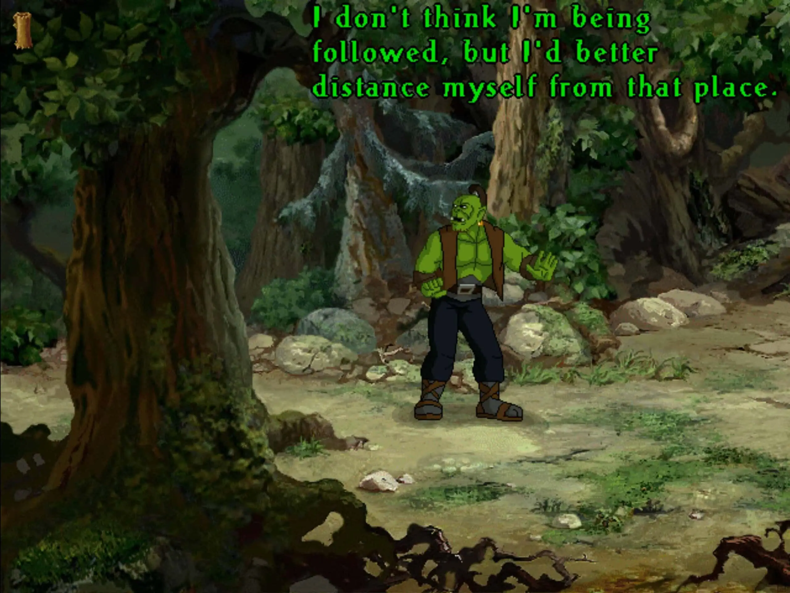On myös annettava pisteitä Blizzardin taidetiimille, sillä Warcraft Adventures näyttää älyttömän hyvältä. Se on Full Throttlen tyyliin täyden ruudun peli minimalistisella käyttöliittymällä, joten lopputulos näyttää miltei piirroselokuvalta. Toki animaatioissa on vähemmän animaatioruutuja kuin oikeissa piirrosleffoissa, mutta silti! Vaikuttavaa työtä!