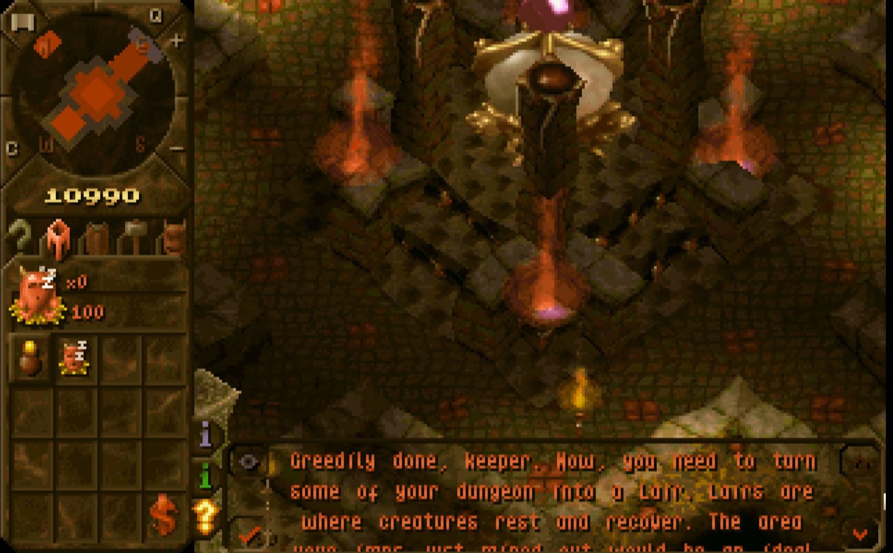Mutta ei kannata silti vaipua epätoivoon. Dungeon Lords -lautapeli on edelleen erinomaisen hyvä ja monet pienemmät pelit ovat sittemmin ainakin tehneet kunniaa Dungeon Keeperin ideoille. Esimerkkinä tästä voisi mainita vaikka tuoreen KeeperRL:n, joka on hieman kuin Dungeon Keeperin ja Dwarf Fortressin yhdistelmä, mutta roguelike-kuoreen käärittynä. Mainio peli, jonka voi muuten ostaa kehittäjien sivuilta lahjoittamalla pelin hinnan jollekin eläinsuojeluyhdistykselle. Hieno tempaus! Ja jos taas mieli tekee fiilistellä sen alkuperäisen pelin parissa, KeeperFX on mainio tapa pistää peli pyörimään millä tahansa modernilla PC:llä pehmeästi ja sujuvasti.