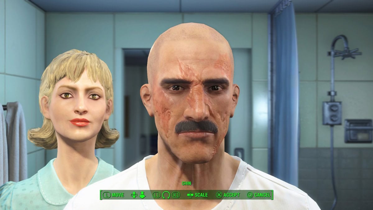 Toisin kuin aiemmissa Fallouteissa, kamera vaihtaa keskustelujen aikana kuvakulmaa puhujasta toiseen. Se tarkoittaa, että joudut ensi kertaa sarjan historiassa katselemaan pelihahmosi naamaa, vaikka aikoisit pelata koko seikkailun ensimmäisen persoonan kameralla. Naamaeditorin kanssa ei siis kannata hätäillä, mutta jos naamavärkki ei miellytä, sen voi korjata ensi kertaa Vaultista poistuessa sekä maksusta pelin suurkaupungin kirurgilla. Pihimpi voi vain hankkia bandannan tai kaasunaamarin.