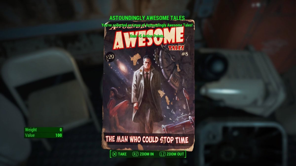 Pelissä keräillään valtava määrä erilaisia aikakauslehtiä ja sarjakuvia, jotka voivat antaa kaikkea Power Armor -maalausohjeista pärstätatuointeihin ja erikoiskykyihin. Ehdottomasti tärkein lukemisto on kuitenkin kätketty jo pelin alkuun. Palaa Vaultista karattuasi omaan kotiisi ja kurkkaa vauvasi kehdon alle. Siellä on Fallout 3:sta tuttu You’re S.P.E.C.I.A.L. -opus, joka antaa yhden pisteen lisää mihin tahansa ominaisuuteen. Tämä ilmainen piste kannattaa ottaa huomioon ja hahmoa suunnitellessa.