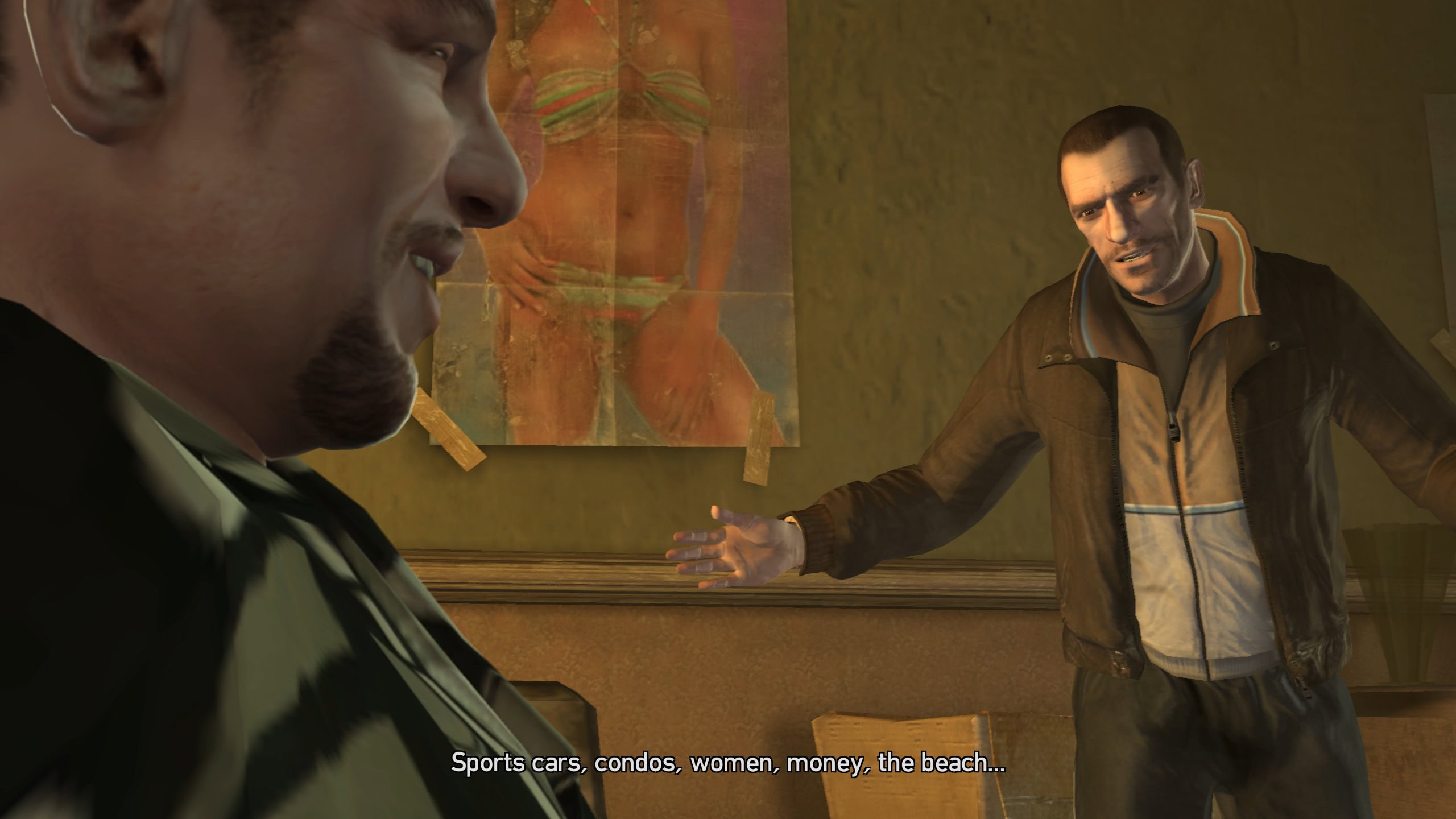 Täytyy rehellisesti tunnustaa tässä välissä, että en ollut pelannut GTA IV:tä ihan muutamaan vuoteen. Muistin pelin tarinan suuret linjaukset, eli lähinnä sen, että pelaaja ohjastaa Serbiasta Yhdysvaltoihin muuttavaa miekkosta, jolla on synkeä menneisyys, ja joka vapauden maassa ajautuu keskelle suurta rikosvyyhtiä yhdessä puupäisen serkkunsa kanssa. Se toinen juttu, jonka muistin GTA IV:stä oli, että autoissa tökki jokin. En muistanut, mikä se jokin oli, mutta mieleeni oli palanut pysyvästi ajatus siitä, että autoissa on jotain vikaa.