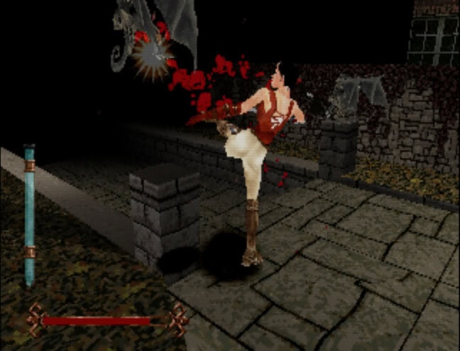 Nightmare Creatures on todellakin sikamaisen vaikea peli, mutta sen vaikeus tulee siitä, että sen pelituntuma on aivan järkyttävää tasoa. Pelaaja tutkii kohtalaisen avoimia kenttiä, jotka haarautuvat välillä suuntaan jos toiseenkin. Pimeillä kujilla juoksentelun ohella se pelillinen sisältö on tietenkin taistelua. Tarjolla on kaksi hahmoa, joista molemmilla on oma pelityylinsä ja omat tappelupelien henkiset kombonsa. Ihan kiva idea, ainakin teoriassa, mutta käytännössä taistelu on niin kaoottista, että pelaaja ei voi tehdä muuta kuin rämpyttää hyökkäysnappiaan tauotta. Jos rämpytyksen onnistuu ajoittamaan oikein, viholliset saa lukittua horjahdusanimaatioon ja sitten hakattua ne hitaasti hengiltä. Jos ajoitus ei onnistu, menettää kolmasosan kestopisteistään iskulle, joka ei näyttänyt edes osuvan.