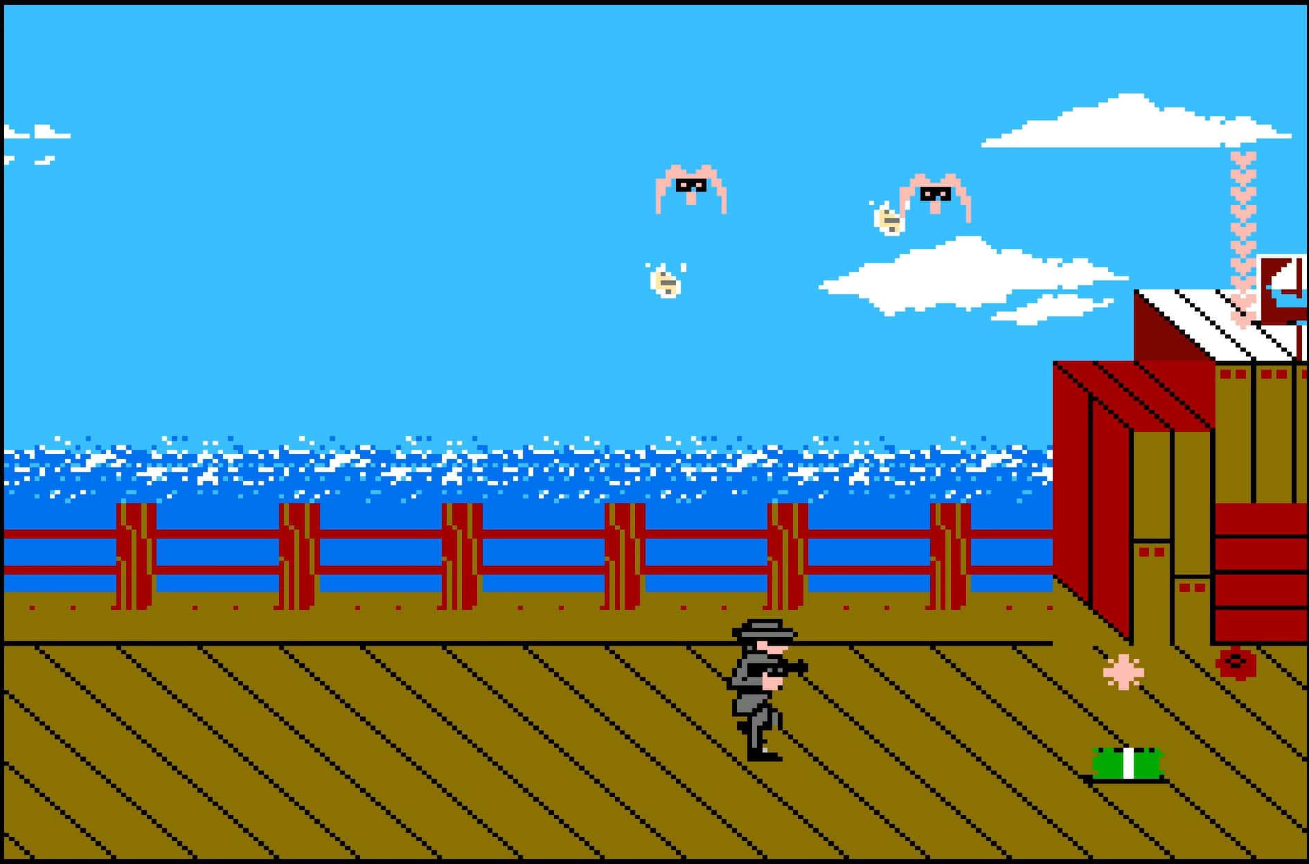 Nyt joku takarivissä kysyy, että jos peli kerran on niin surkea, niin miten ihmeessä sitä ikinä saatiin edes julkaista. Nintendohan tunnetusti piti tarkkaa kirjaa siitä, että heidän konsoleilleen julkaistut pelit olivat jos nyt eivät aina hyviä, niin ainakin pelikelpoisia. Mutta juuri se onkin jutun suurin juju: ei Color Dreams kysynyt keneltäkään lupaa. Nintendo ei ole taatusti Raid 2020:ta nähnytkään saati sitten antanut sille mitään julkaisulupia tai tuottanut sen pelimoduuleita. Mutta moduulit olivat lopulta aika yksinkertaista teknologiaa, joten kun joku fiksumpi oli takaisinmallintanut niiden sisältämän raudan, kuka tahansa puupää pystyi tuottamaan itse omia pelejään ja sitten pusertamaan niitä poskiensa välistä kauppojen hyllyille.