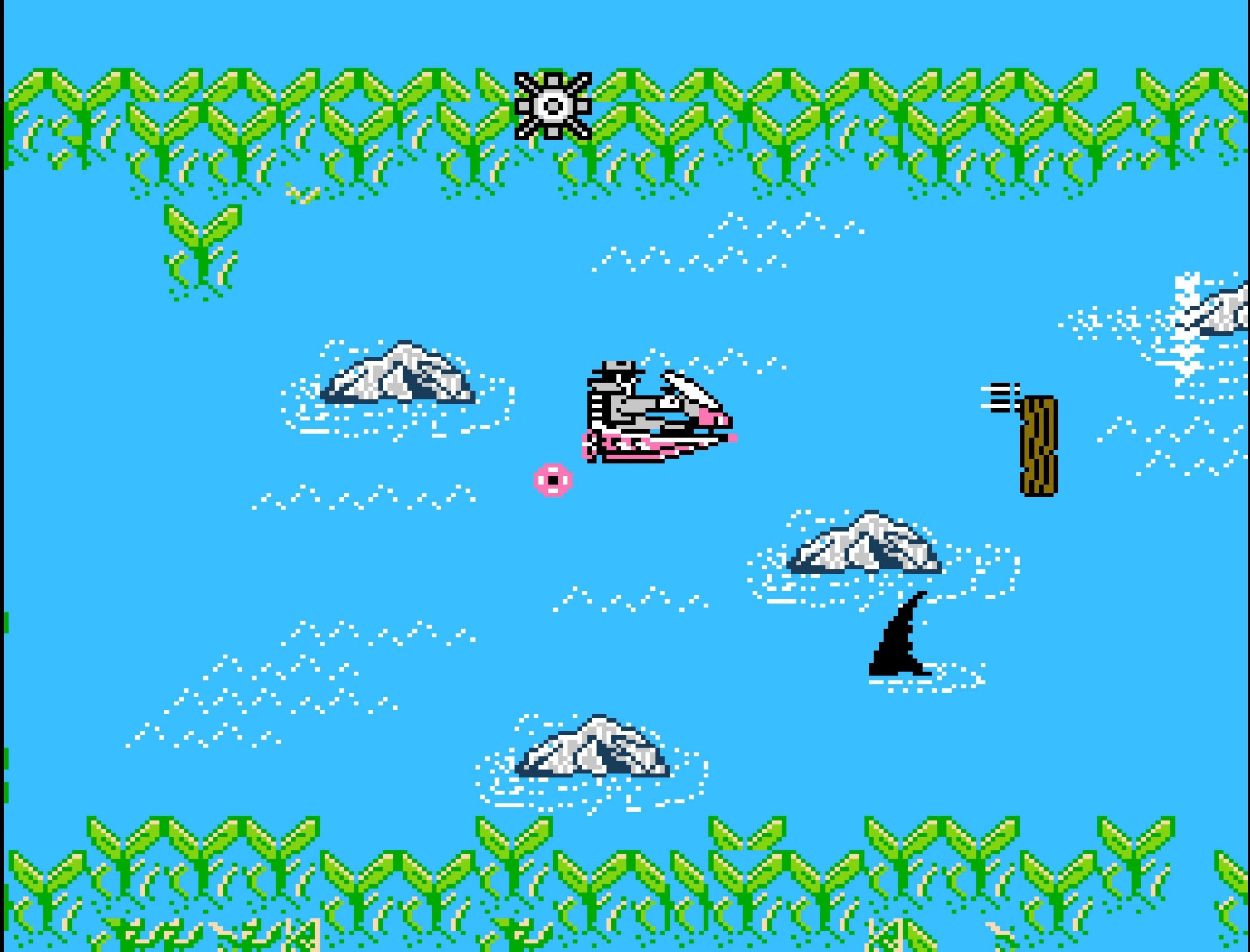 Jos tästä jotenkin vielä selviää hengissä — ja puhun nyt siis pelaajan selviytymisestä, en pelihahmon — päätyy toiseen kenttään, jossa pitäisi suhata veneen kanssa pitkin rämeitä taistelemassa haikaloja, jättihyönteisiä ja helikoptereita vastaan. En tiedä, mitä tämän kentän jälkeen tapahtuu, koska useista yrityksistä huolimatta en onnistunut luovimaan aivan jäätävän surkeasti ohjautuvaa paattiani edes lähelle kentän loppua. Enkä usko, että kukaan muukaan on ikinä pystynyt, ja se sisältää taatusti myös pelin kehitystiimin. Tätä paskaa ei ole kukaan pelitestannut hetkeäkään, sen lupaan.