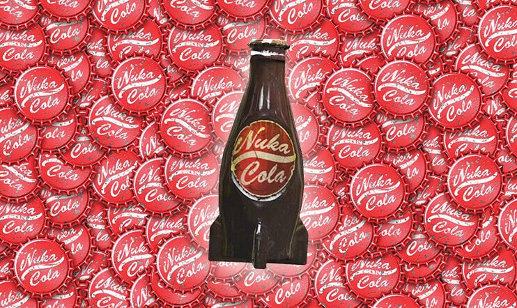 Vuonna 2044 kehitetty Nuka-Cola oli USA:n suosituin juoma ennen sotaa, vaikka sen maku kärsi samana vuonna tapahtuneesta mystisestä kasvirutosta, joka tappoi kaikki maailman passiohedelmät. Nuka-Colaa valmistettiin kaikkiaan kymmentä eri makua, ja niistä erikoisin on Quantum, jonka valmistuksessa käytettiin radioaktiivista hohtavaa isotooppia. Quantum on erittäin harvinaista, sillä se ehti kauppoihin samana päivänä, kun pommit putosivat. Sodan jälkeen kolapullojen korkeista tuli Fallout-maailman virallinen valuutta, kun länsirannikon Hub-kauppakeskuksen kauppiaat valitsivat ne kolikokseen. Korkkeja ei voi väärentää uskottavasti, sillä niiden valmistuksessa käytetty tekniikka katosi ydinsodan aikana.