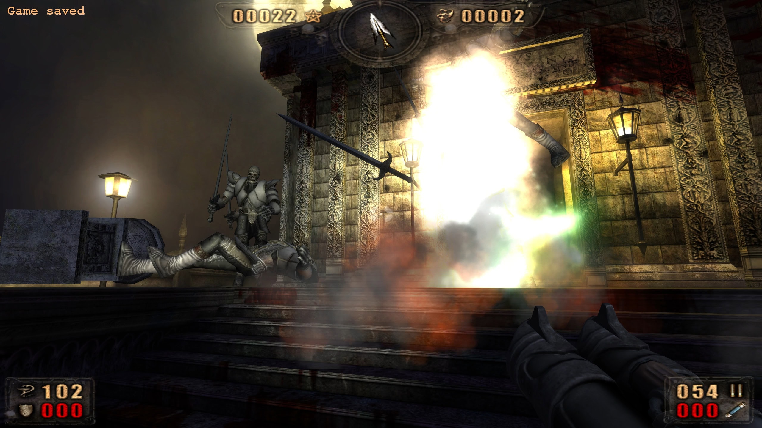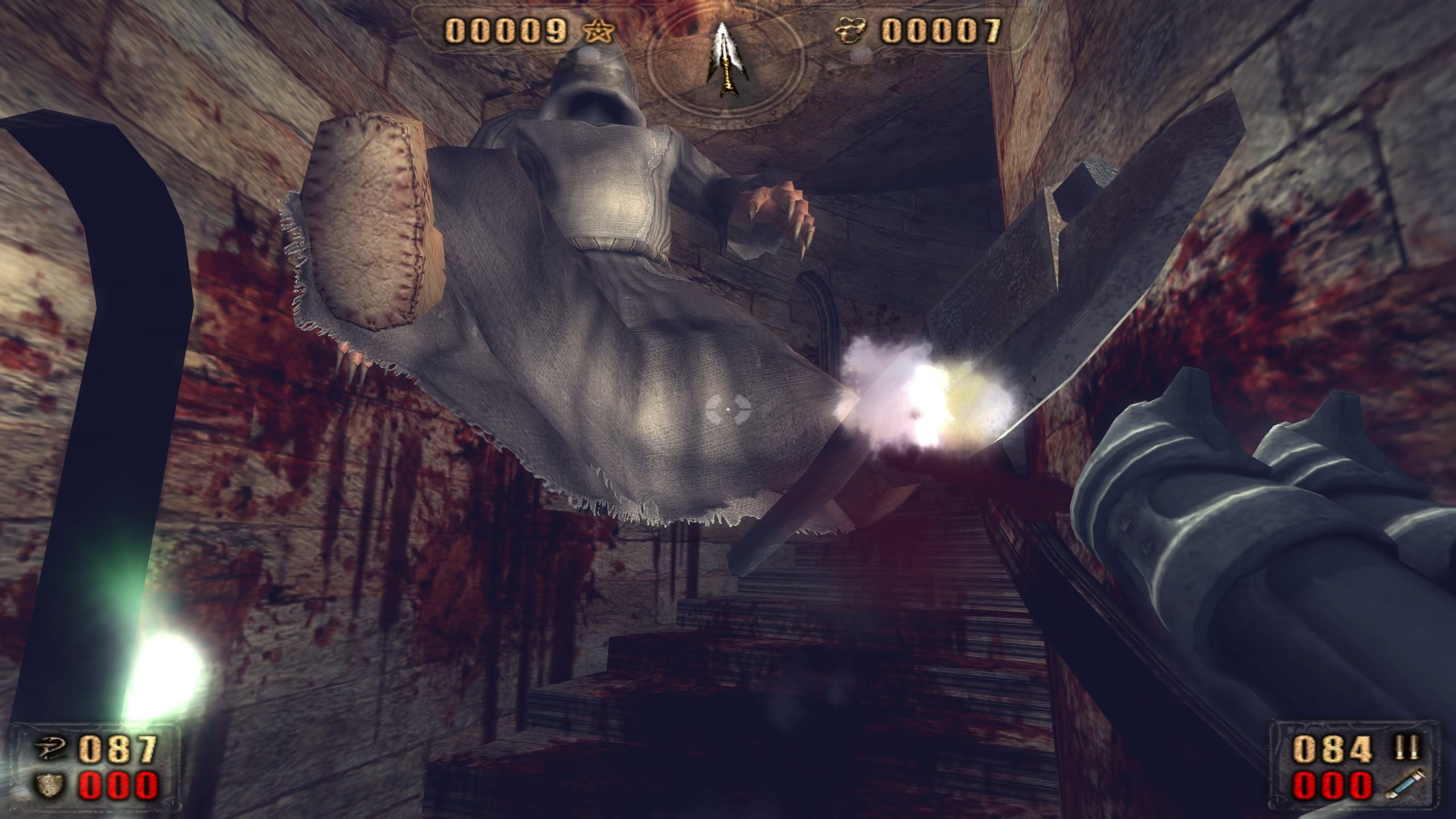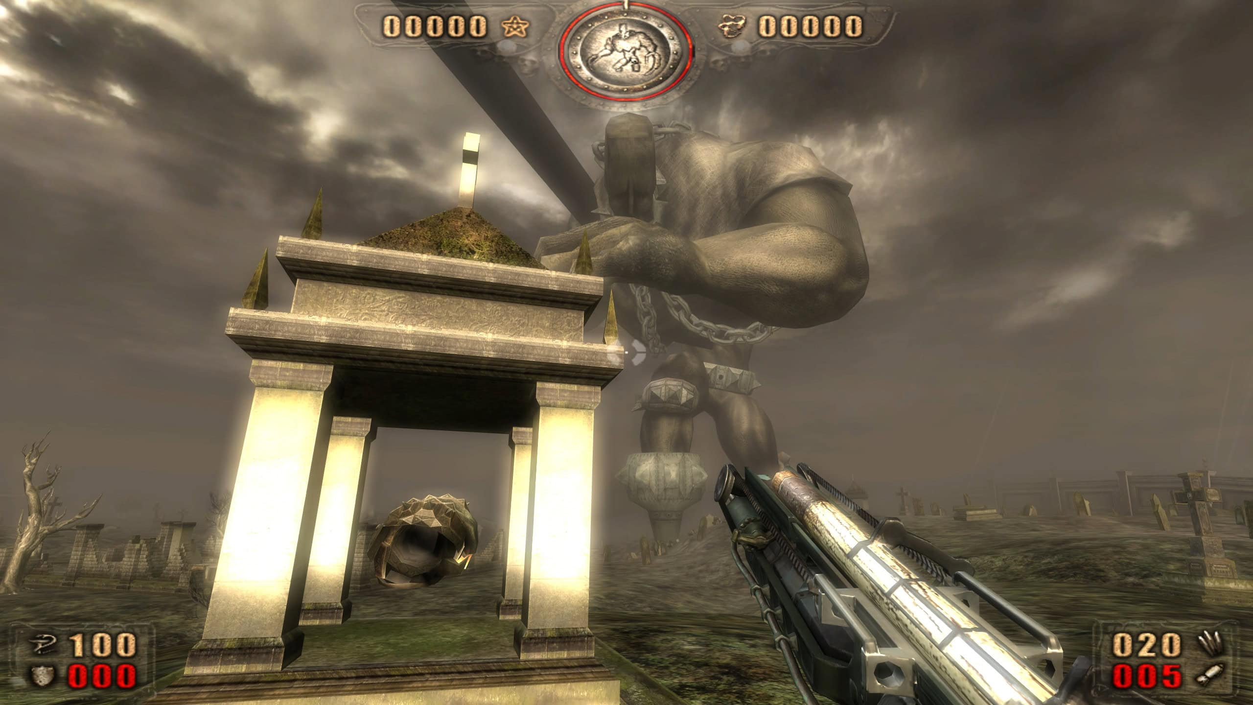 Tämä hohto tekee pelistä tavallaan myös ajattoman klassikon. Okei, räsynukkefysiikat eivät enää herran vuonna 2025 ole mikään ihmeellinen juttu, eikä Painkillerin aikanaan niin komea ulkoasukaan enää varsinaisesti räjäytä tajuntaa. Spektaakkeli toimii kuitenkin yhä, ja kun se ensimmäisen maailman pomo, satojen metrien korkuinen jättiläinen, saapui paikalle, olin yhä huumassa. Siitäkin huolimatta, että selvästikään peli ei ole 100% yhteensopiva modernien näytönohjainten kanssa, koska vihollisen olkapää näytti siltä kuin siitä olisi kasvanut ulos jonkinlainen muotoaan muuttava antenni.