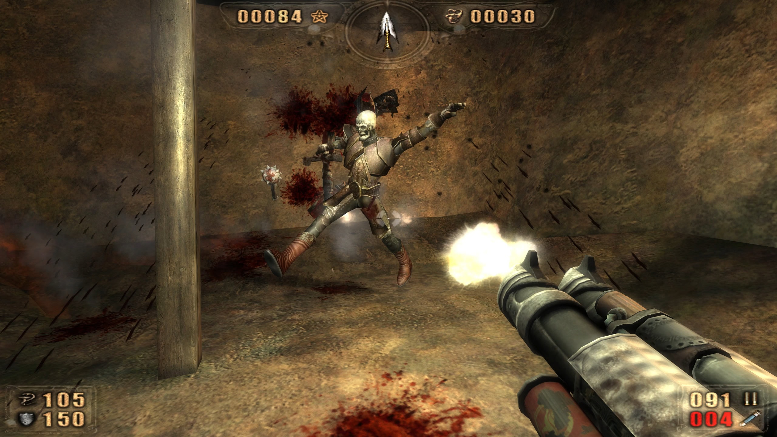 Rempseän tykityksen ohella se pelin toinen suuri tavaramerkki on, että se nojaa hyvin vahvasti räsynukkefysiikoihin, mikä oli vuonna 2004 kova juttu. Kaikki viholliset lentävät kuollessaan pitkin seiniä tai taivaisiin raajat villisti heiluen. Muutaman kentän jälkeen arsenaaliin lisätään pelihistorian parhaimpiin aseihiin kuuluva vaarnanheitin, joka laukoo metrin mittaisia teräviä sauvoja. Fysiikkavetoisessa pelissä tämä tietenkin tarkoittaa, että osuman saaneet viholliset lentävät kohti horisonttia ja jäävät roikkumaan vaarnasta kun vihdoin törmäävät seinään. Ja jos tästä ei saa irti hupia, on sieluton tyyppi.