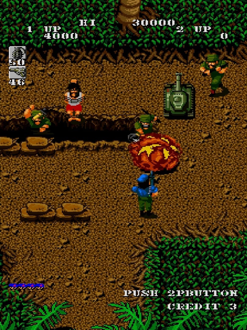 Aluksi kaikki näyttää niin kivalta. Grafiikka on kaunista 2D-pikselitaidetta, pelihahmot ovat suuria ja ilmeikkäitä ja efektit komeita. Pelattavuuskin on vuoden 1987 peliksi aika innovatiivista, sillä Guerrilla War on tavallaan kahden tikun räiskintäpeli ja antaa pelaajan ampua eri suuntaan kuin liikkuu. Kabinetissa ei kuitenkaan ollut kahta tikkua, vaan ainoastaan yksi ohjain, jota pystyi normaalin liikuttelun ohella pyörittämään. Todella erikoinen ratkaisu, joka tekee pelin emuloinnista hieman haastavaa, mutta hätä keinot keksii.