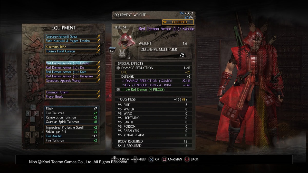 On myös aivan realistista tehdä moniosaaja, joka hallitsee kaikki aseet ja vaihtaa niitä tilanteen mukaan. Toisin kuin Souls-sarjassa, Niohissa jokaiseen ominaisuuteen panostava moniosaaja on aivan elinkelpoinen ja erittäin hauska pelata. Oma hahmoni oli vahvin keihäissä, mutta käytti myös kaikkia muita aseita ja panosti vahvasti myös taikuuteen. Jokaisen numeroarvon kasvattamiseen panostava tyyli voi vaatia lisäkokemuksen keräämistä ”grindaamalla”, mutta palkintona on monipuolisempi taistelu.