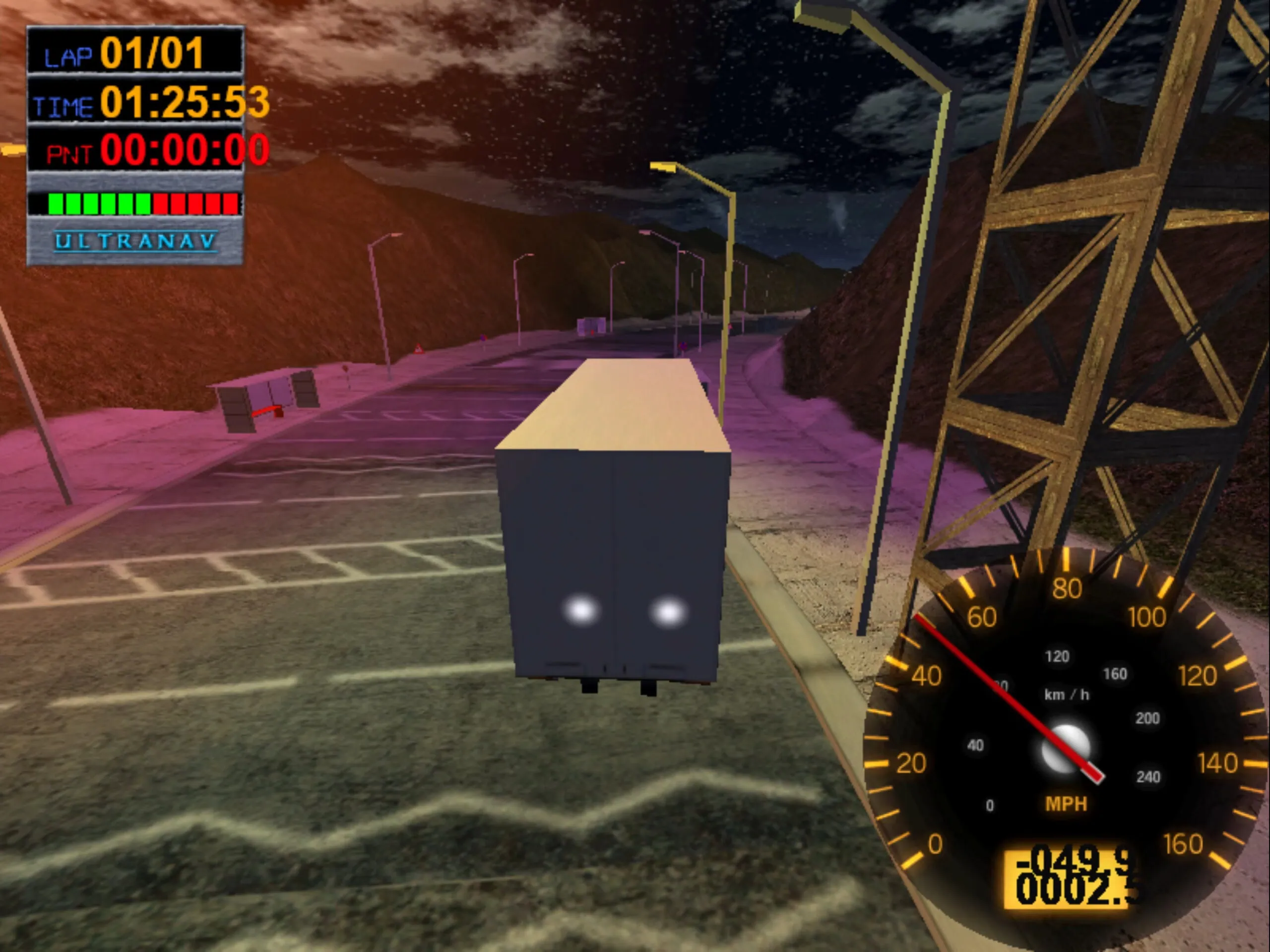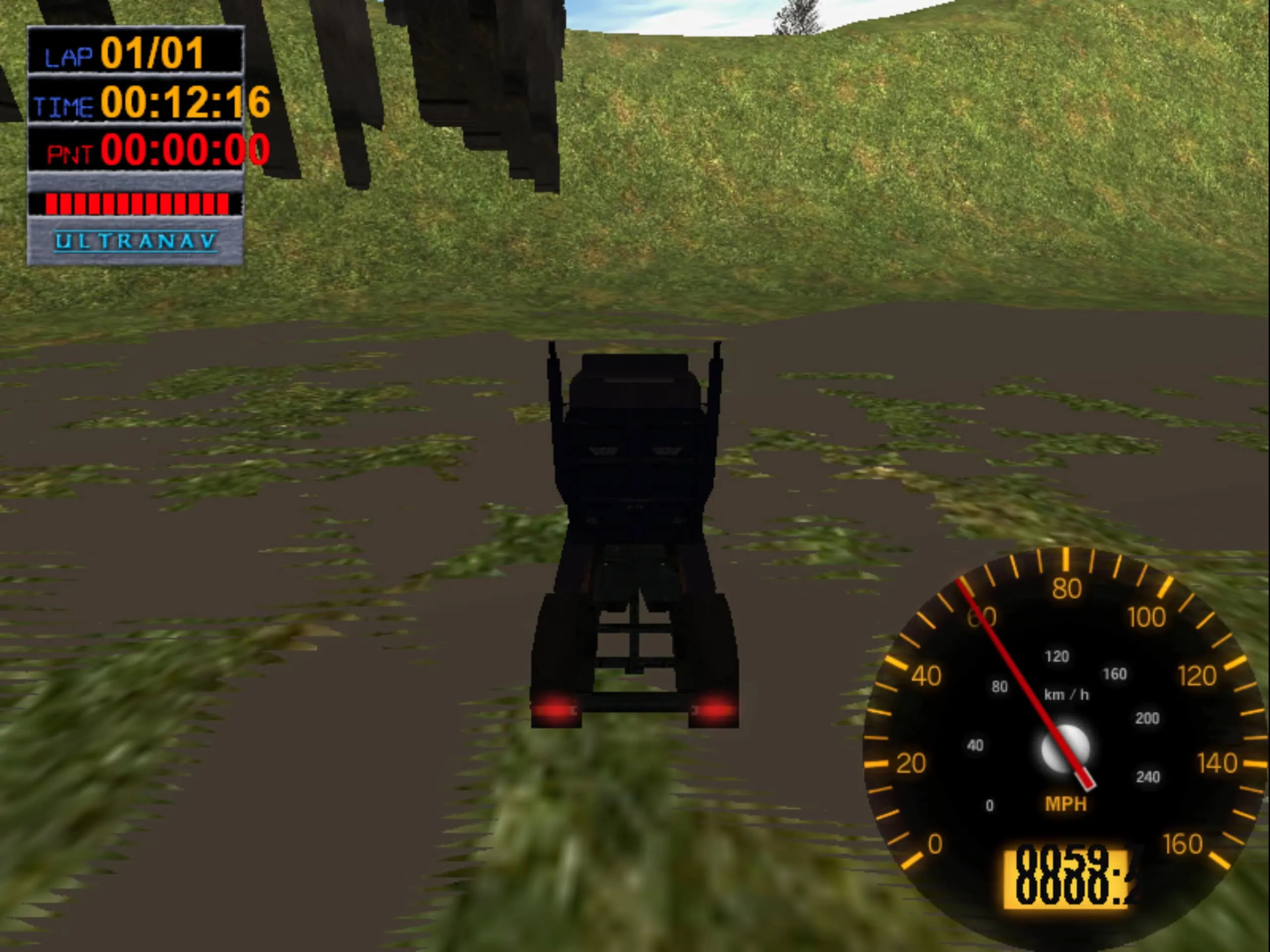 Tämä osoittautui vaikeaksi, sillä peli oli niin surkea ja sai niin pienen jakelun, että sitä ei Suomen pelikaupoista löytynyt, eivätkä edes piraatit tuntuneet olleen siitä kiinnostuneita. Ja kun peliarkistoijat vihdoin puskivat sen levykuvat verkkoon, aika oli jo ajanut Big Rigsin ohi. Yritin kyllä pariinkin otteeseen saada sitä toimimaan, mutta pelin käyttämä VSYNC-ratkaisu on jotenkin niin buginen, että moderneilla näytönohjaimilla kuva vain välkkyy villisti kahden fraamin välillä kuin strobovalo konsanaan. Pelikelvoton, siis, ja vielä potentiaalisesti vaarallinen esimerkiksi epilepsiasta kärsiville.