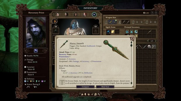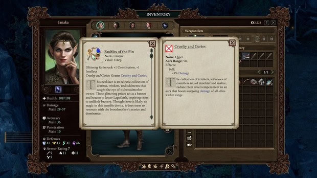 Saaliskin on kokenut parannuksia. Ensimmäisessä Pillarsissa tuli pelin loppua kohti selväksi, että useimmissa taika-aseissa toistuivat aina samojen erikoiskykyjen valikoimat. Deadfiressa näitä erikoiskykyjä on enemmän, ja uniikkiesineissä jopa erikoiskyvyt ovat aidosti ainutkertaisia nimen ja vaikutuksen puolesta. Lisäksi tarjolla on enemmän Soulbound-esineitä, jotka sidotaan tietyn hahmon käyttöön, jolloin niiden kyvyt avautuvat hitaasti. White March -laajennuksessa nähty Soulbound-mekaniikka oli aiemmin loppupelin hupia, joten tämä on tervetullutta kehitystä.