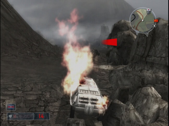Tämä kannattaa, sillä pelin alussa käytössä olevalla rynnäkkökiväärillä ja kranaateilla ei kovin paljon pahennusta saa herätettyä, mutta ongelma ei ole suuri. Jos kavereilla ei ole antaa parempaa kalustoa, niin sitä voi varastaa käyttöönsä juuri niin paljon kuin haluaa. Tarjolla on valtava valikoima erilaista sotilaskalustoa jeepeistä helikoptereihin ja panssarivaunuihin, ja pelkästään niiden kanssa riehuminen ilman sen suurempia tavoitteita on aivan älyttömän hauskaa puuhaa. Hypätään vaikka panssarivaunun puikkoihin, suunnataan nokka kohti lähintä pohjois-korealaisten miehittämää aluetta ja sitten annetaan palaa. Jokainen tuhottu vihollisajoneuvo kilauttaa rahaa pelaajan tilille, ja tällä rahalla voi sitten tilailla vaikka tykistökeskityksiä tai ilmahyökkäyksiä milloin minkäkin tarjoajan valikoimista. Tämä oli juuri se tyyli, jolla itse pelasin veljeni kanssa aikanaan Mercenariesia, ja hauskaa oli.
