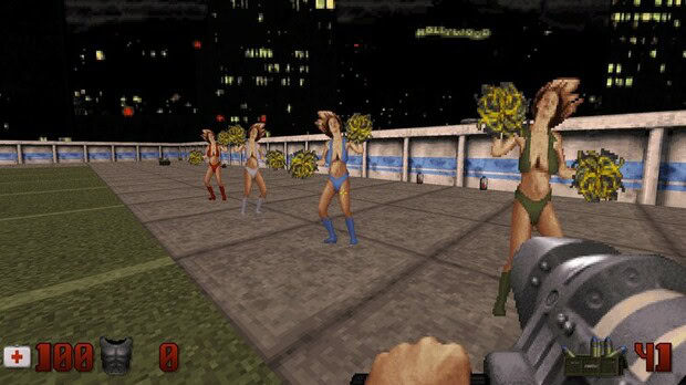 Duke Nukem 3D keräsi myös paljon huomiota pelaajilta pelimoottorinsa ja maailmansa ansiosta. Peli sijoittui ainakin aluksi oikeaan maailmaan, ainakin melkein. Muukalaisinvaasion kouriin joutunut Los Angeles sisälsi hämäriä kujia, kulmakauppoja ja tietenkin pornoleffateattereita. Niin, tämä oli se pelin kolmas suuri juttu: vähäpukeiset naiset. Mitään bikiniasuja tuhmempaa pelissä ei nähty, mutta rahan tarjoaminen eksoottisille tanssijoille sekä ”bikinibimbot Havaijilla” -tason elokuvajulisteet olivat myös vuonna 1996 kovaa valuuttaa teini-ikään ehtineen pelaajakohortin keskuudessa.