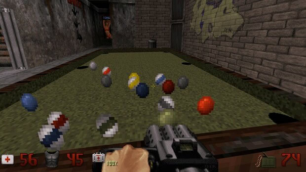 Minua kiinnosti Duke Nukem 3D:ssä enemmän se, miten maailma tuntui – jälleen, vuonna 1996 – kovin elävältä. Käytännössä tämä tarkoitti vain sitä, että se oli täynnä pieniä leluja. Vessan pystyi vetämään, Duke pystyi katselemaan itseään peilistä, biljardipöydän palloja pystyi paukuttelemaan ympäri kenttää ja niin edelleen. Kentät tuntuivat myös suuremmassa mielessä todella interaktiivisilta. Jo pelin toisessa kentässä räjäytettiin kerrostalo, joka sitten romahti aikanaan todella näyttävän näköisesti romupinoksi jättäen jälkeensä aseita ja aarteita. Legendaarinen Richard ”Levelord” Grey teki erinomaista työtä kenttien ja niiden suunnittelun kanssa, eikä tämän vaikutusta Duken suosioon voi vähätellä.
