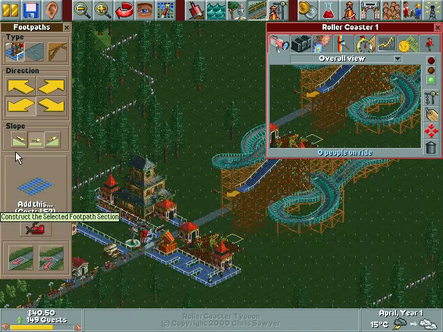 Huvipuistopeleillä on pitkät ja jalot perinteet, joskin niissä on aika paljon toistoa. Peter Molyneux’n viimeisten hyvien pelien joukkoon kuuluva Theme Park avasi putken pään vuonna 1994. Sen jälkeen vetovastuu siirtyi oikeastaan yksinomaan Chris Sawyerin Rollercoaster Tycoon -pelisarjalle, joka jatkuu käytännössä vielä nykypäivänäkin. Kun alkuperäisen pelisarjan oikeudet juuttuivat Atarin suohon, David Brabenin Frontier Developments heitti pihalle epävirallisen ja hyvin suositun oman jatko-osansa.