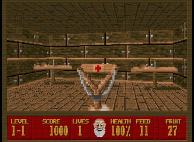 Paperilla voisi kuvitella, että Super 3D Noah’s Arkin kehitystarina todellakin on noin simppeli. Wolfenstein myy kovaa, mutta on hyvin väkivaltainen peli. Tehdään siitä versio, jossa väkivalta on korvattu eläimiä ruokkivalla raamatullisella hahmolla ja ratsastetaan suoraan pankkiin rahojemme kanssa! Todellisuus on hieman toisenlainen.