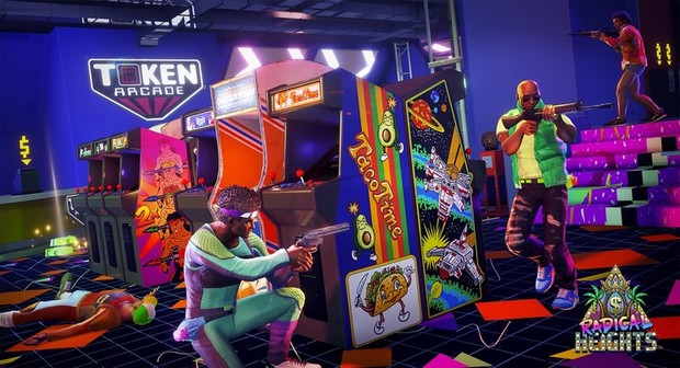 Toistaiseksi Radical Heights tuntuu lähinnä nojaavan armottomaan ja ylilyövään 80-luvun juustoiseen tunnelmaansa. Takatukat liehuvat, neonvärit hohtavat ja matsivoiton jälkeen soi Karate Kid -leffasta tuttu Joe Espositon You’re The Best.