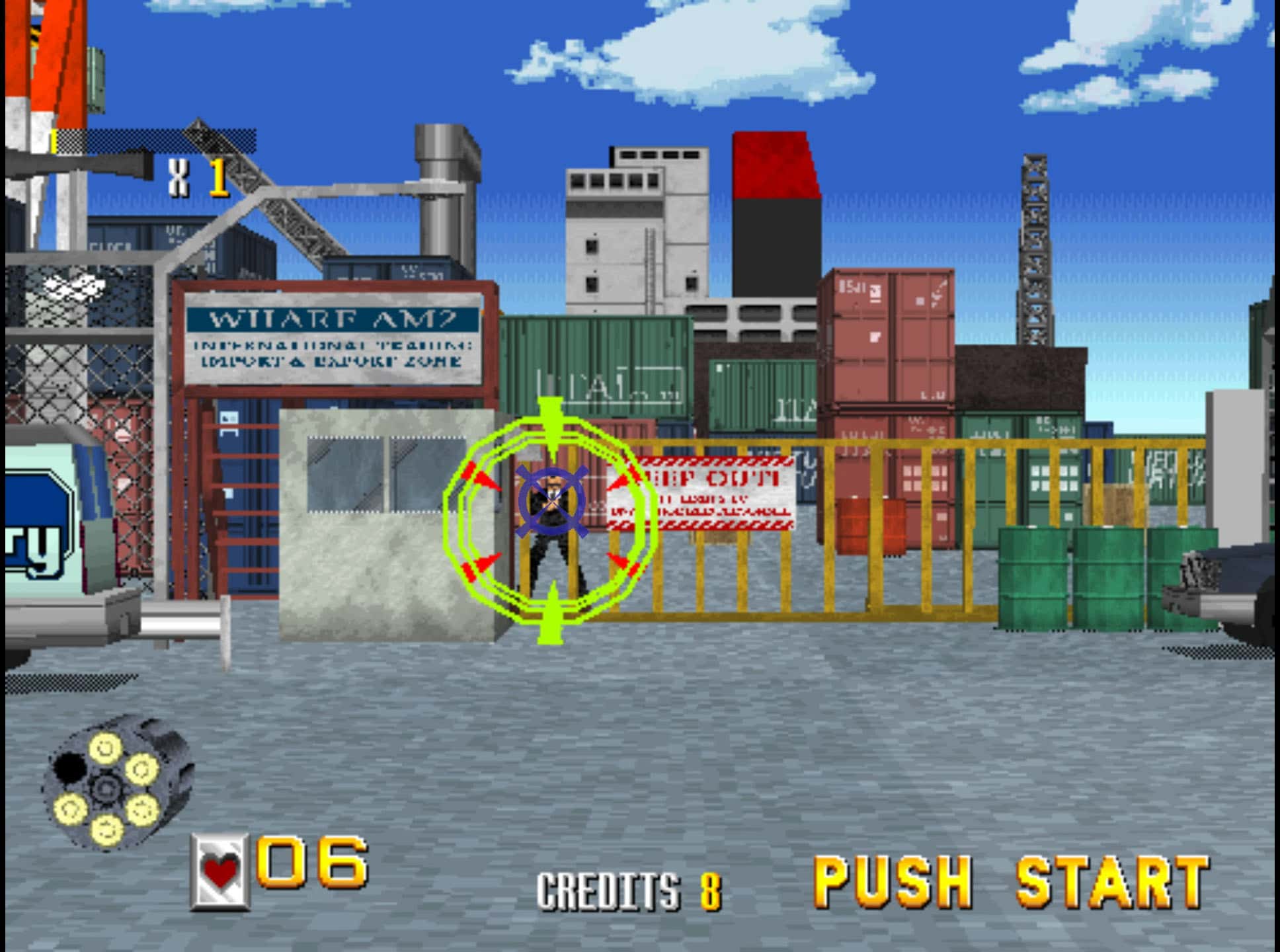 Videointron, joka muuten sai Segan graafikko Kazufumi Ohashin tuottaja Takashi Isonon paskalistalle. Ohashi oli lisännyt introon pienen kohtauksen, jossa pelin pääpahis näytti poliiseille keskisormea, mutta tämä oli Isonon mielestä niin järkyttävää menoa, että hän siirsi Ohashin kehittämään aseen kalibrointiin käytettävää harjoitustilaa.