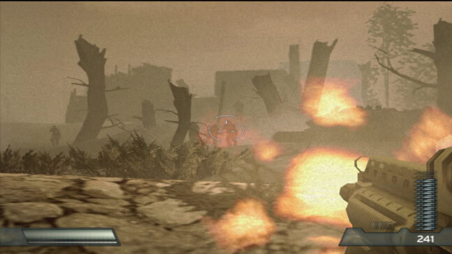 Aloitetaan vaikka siitä tärkeimmästä: Killzone on teknisesti aivan karmea tekele. Guerrilla selvästi tavoitteli elokuvamaista ilmettä ja ällistyttävän komeita efektejä, mutta peli maksaa siitä kovan hinnan. Ruudunpäivitysnopeus pyörii parhaimmillaankin jossain 20 FPS:n tienoilla ja putoaa usein vielä paljon alemmas. Tuloksena on peli, joka tuntuu usein suorastaan pelikelvottomalta, koska tarkka tähtääminen on niin älyttömän hankalaa ja kiikkerää. Traagisinta on silti, että lopputulos ei edes näytä mitenkään hirveän erikoiselta, edes vuoden 2004 asteikolla arvioituna.