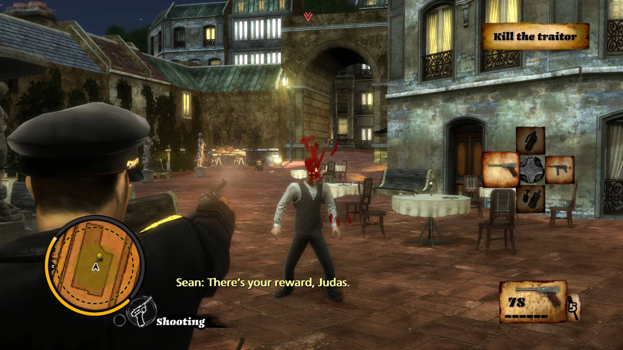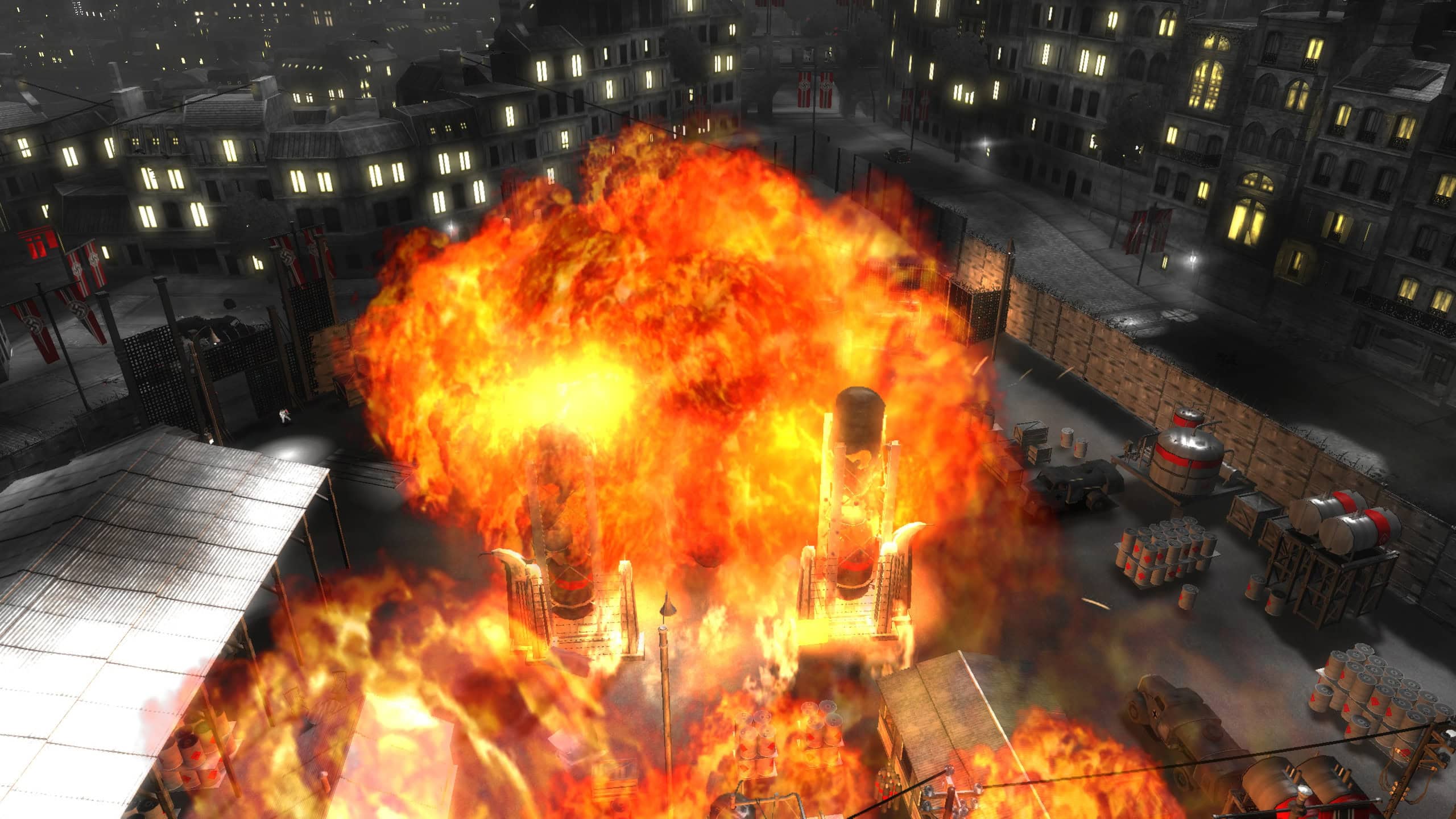 Tarkoituksena todellakin on murhata vino pino natseja, joko tehtäviä suorittaessaan tai ihan vain sen takia, että jos ei voi saada huumoria natsin persauksiin kiinnitetystä aikapommista, niin mistä sitten? Pariisi on aluksi täynnä natsien joukkoja ja rakennelmia, joita sitten poistellaan maisemia pilaamasta jos jonkinlaisilla aseilla ja vehkeillä. Räjähteet ovat käytössä aivan pelin alusta saakka, ja jos ei halua tyytyä tavanomaiseen, voi vaikka varastaa käyttöönsä natsien tankin ja pistää sillä haisemaan. Ei ole yllättävää, että pelin kehittänyt Pandemic Studios vastasi aiemmin myös erinomaisesta Mercenaries-pelistä, jota hehkutin muutama viikko sitten.