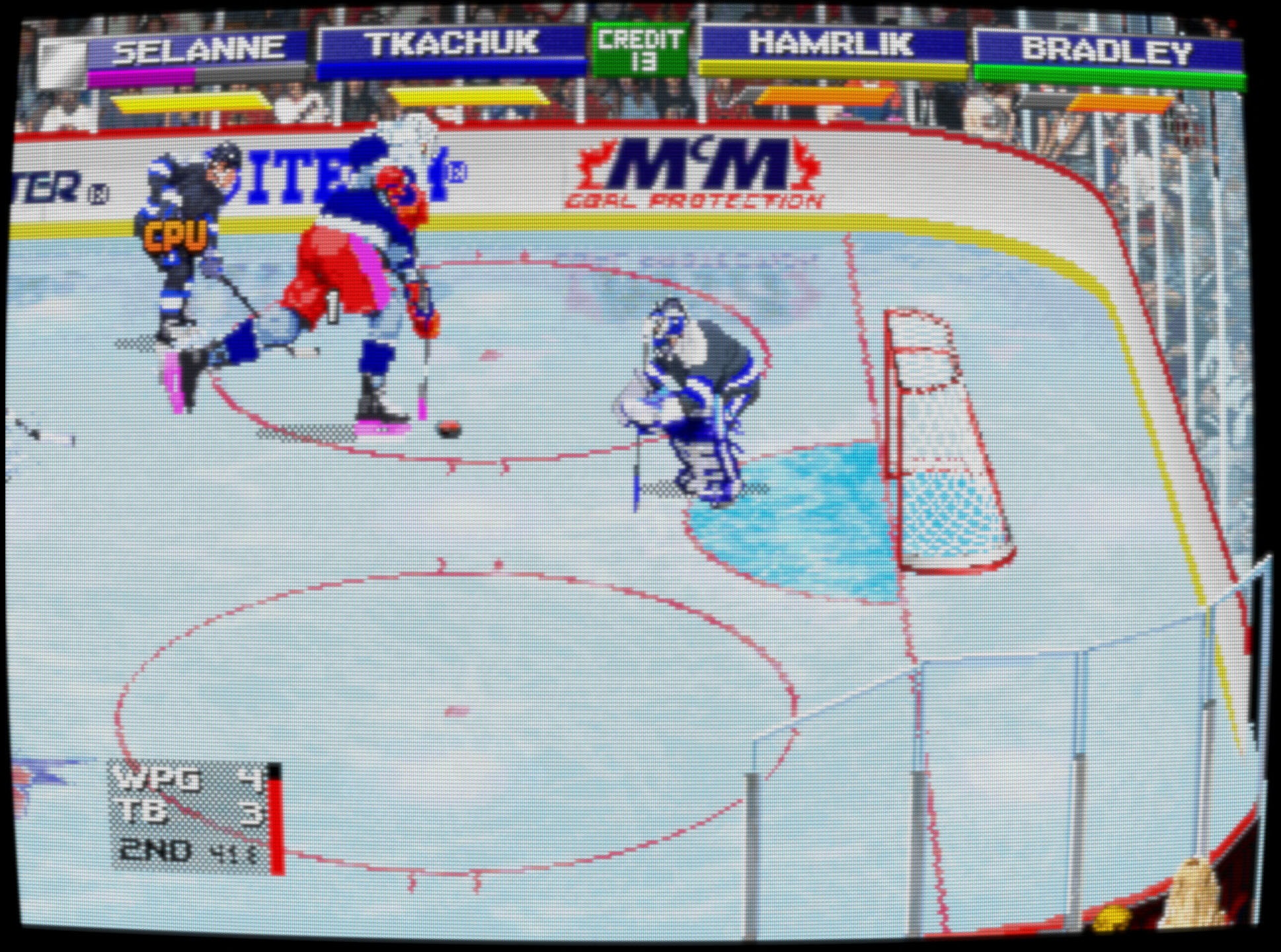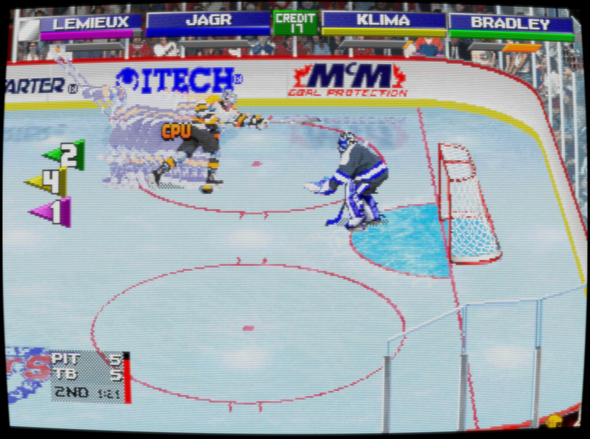 Tämä mielessä en tuntenutkaan mitään tunnontuskia, kun muutamaa vuotta myöhemmin pystyin lataamaan kolikkopelin ROM-imaget jostain netin emulaattorisaitilta ja pelaamaan Open Ice Challengea emulaattorilla koko sieluni kyllyydestä. Ja näin koettuna se toimikin erinomaisesti. Okei, uudelleenpeluuarvo on lopulta aika kyseenalainen, mutta hillittömän nopeatempoinen ja näyttävä lätkä oli silti tiukka resepti, joka kutkutti aivojani samalla tavalla kuin monet roguelike/roguelite-pelit nykyään. Ei pelin parissa ehkä viitsi istua koko iltaa putkeen, mutta pienet pelisessiot muiden töiden ja puuhien välissä viihdyttivät minua silti kuukausien ajan.