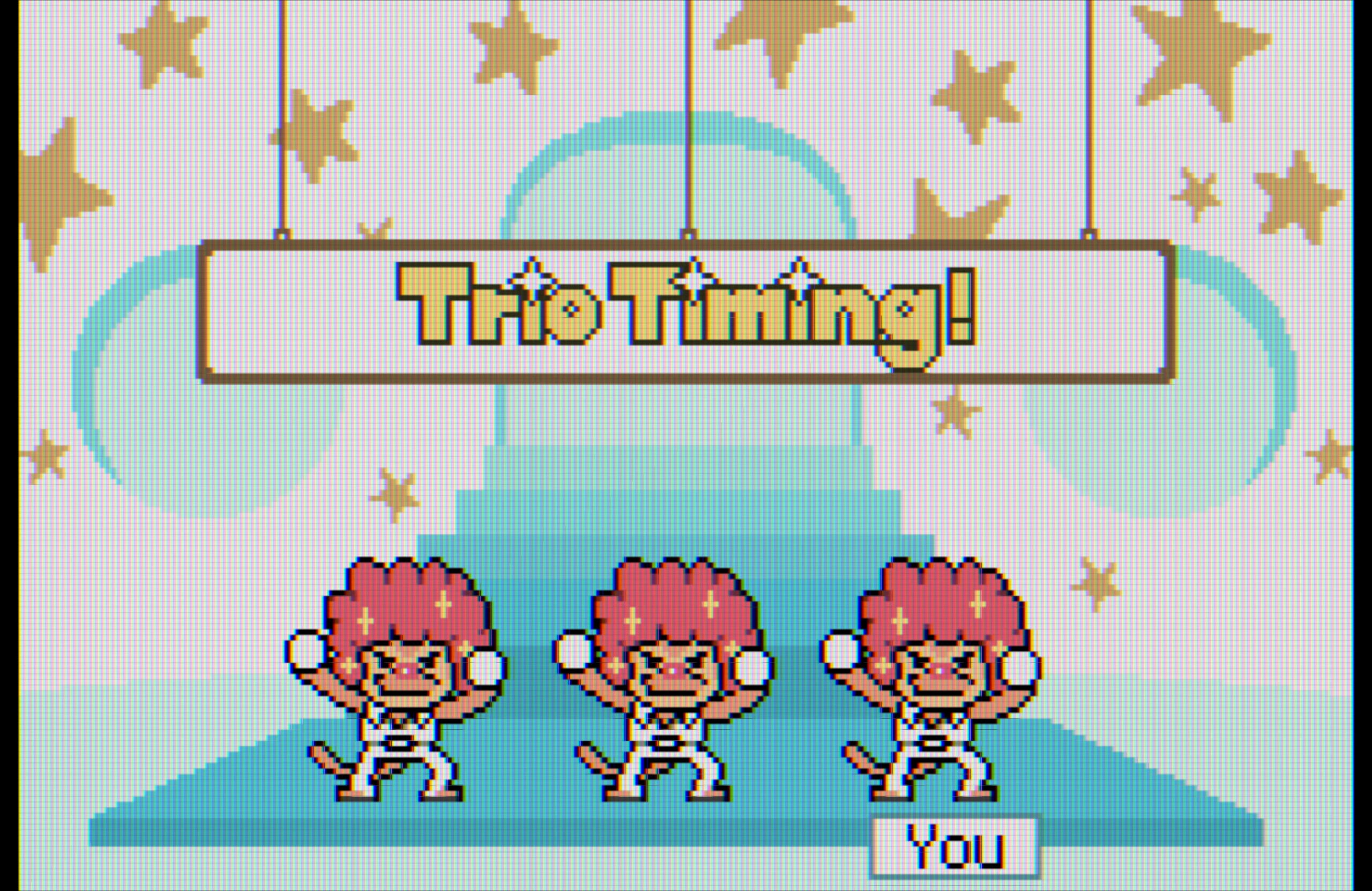 Vaikeustasoa nostaa myös se, että Rhythm Tengokun ajoitukset ovat äärimmäisen tarkkoja. Länsimaiset rytmipelit antavat yleensä sen verran armoa, että kunhan soittaa suunnilleen oikeaan aikaan, homma etenee. Mutta ei nyt. Nyt vaaditaan jos nyt ei rumpukoneen tarkkuutta niin melkein. Ongelmaa pahentaa se, että ne eri kenttien ajoitukset eivät aina ole täysin selkeitä. Leikkasin itse oheisesta videosta pois usean minuutin pätkän, jossa epäonnistuin marssi-minipelissä tusinan kertaa putkeen, koska naputin kyllä rytmissä, mutta en tajunnut, että jokaisen alikersantin käskyn jälkeen seuraavalla biitillä marssijat nostivat itse jalkansa ilmaan, ja rytmikäs painelu kuului aloittaa vasta sen jälkeen. Tästä ei tietenkään saa mitään sen suurempaa palautetta, joten jos homma ei lähde rullaamaan, ongelma ei välttämättä ratkea ihan nopeasti.