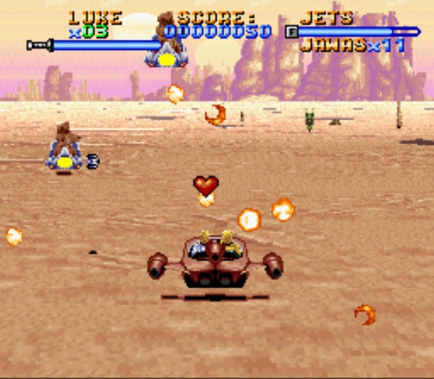 16-bittisen konsoliraudan ansiosta elokuvien yleisilme tavoitettiin paremmin, ja etenkin Darth Vaderin haastaminen kaksinkamppailuun Bespinin pilvikaupungissa ja toisella Kuolemantähdellä nostatti kylmät väreet iholle. Lentelykenttiin saatiin jopa kolmiulotteinen vaikutelma konsolin Mode 7 -grafiikkatilalla, minkä ansiosta elokuvien huimat avaruustaistelut eivät olleet enää konsolimaisen suoraviivaisia.