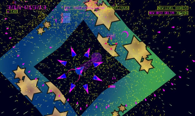 Väri- ja äänivallien ytimessä on kiihkeä ja kenttä kentältä muuntuva räiskintäelämys. Meininkiä höystetään esimerkiksi Missile Command -henkisesti ketjuuntuvilla räjähdyksillä ja eri aseiden vuorottelulla erilaisia vihollisia vastaan. Puhtaimmillaan se on kuin taiteellista taitopelaamista, jossa pelaaja rakentaa pistekertoimia ja farmaa joka kentästä maksimipisteitä. Sitten muukalaiset läpäisevät puolustuksen ja lyövät päin pläsiä – tai livahtavat kellariin, josta ne täytyy siivota. Pirskahtelu pitää pelaajan kasvavan hämmennyksen vallassa. Osa kentistä solahtaa läpi kerralla, mutta toisinaan kentän jujun tajuaminen vaatii monta kuolemaa. On kuin kiipeäisi hämmennyskukkulalle kiemurtelevaa ja välillä pystyyn kääntyvää kapeaa polkua pitkin.