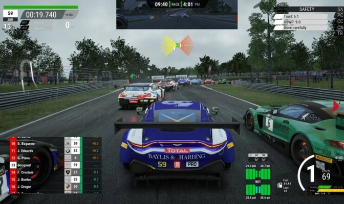 Autovalikoimassa kilpailupainotus näkyy siinä, että peli on Blancpain GT -sarjan virallinen lisenssikumppani ja samalla siviiliautot on karsittu pois GT3-kilpureiden tieltä. Niinpä peli erottautuu viime vuosien muista ajosimulaattoreista keskittymällä hyvin tarkasti vain parin autoluokan mallintamiseen. Jos GT-kilpurit eivät kiinnosta, tarjolla ei ole paljon mitään.