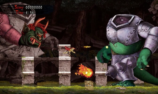 Silti ei käy sanominen, että Ghosts ’n Goblins tai varsinkaan sen jatko-osa Ghouls ’n Ghosts olisivat olleet huonosti suunniteltuja pelejä. Koin valaistumisen jälkimmäisen suhteen muutama vuosi sitten, kun halusin lähteä kokeilemaan hermojani pelin kanssa ja törmäsin lopulta enemmän innostavaan kuin tuskastuttavaan kokemukseen. Kuolemia kertyi toki vinhaa tahtia, mutta pelaaminen ei tuntunut missään vaiheessa epäreilulta. Jokaisen ohitetun esteen jälkeen halusin innolla nähdä, mistä pystyisin selviytymään seuraavaksi.