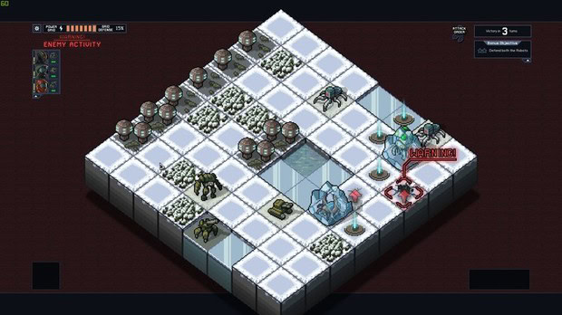 Kunkin tehtäväryppään lopussa odottaa aina kova pomoötökkä, ja jos sen saa kukistettua, pääsee pokkaamaan piloteilleen uusia aseita ja parantelemaan taistelupukujen järjestelmiä. Numerot eivät silti Into the Breachia ratkaise, vaan pelaajan kyky ajatella.