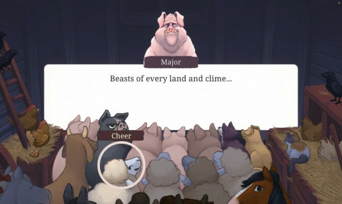 Vain muutaman kevyesti animoidun ruudun mitalle levitetty peli etenee naksuttelemalla erilaisia komentoruutuja, joilla määritellään eläinyhteisön edustajien arjen raamit. Resurssit eivät veny kaikkialle, eikä yksikään ratkaisu palvele yksiselitteisesti koko yhteisöä, joten tiuhaan järjestetyt puoluekokoukset ladon suojissa ovat riitaisia koitoksia. Maatilan arkea valvova pelaaja ohjastaa hoidokkejaan parhaansa mukaan sellaiseen suuntaan, joka piirtää oman maatilavaltion poliittisen ilmapiirin ääriviivoille täytettä.