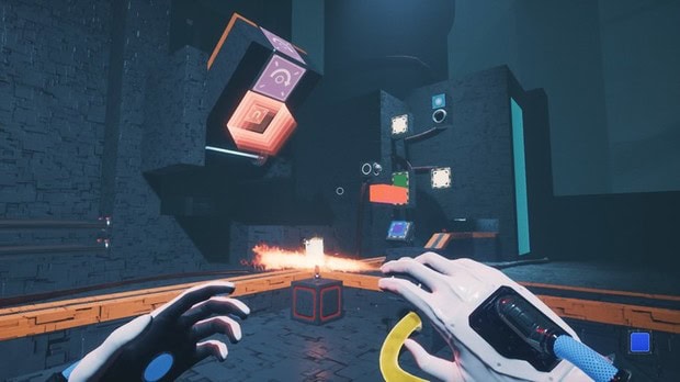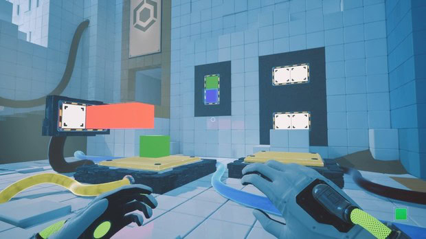 Mysteeriltä haiskahtavat lähtökohdat ja ympäristö eivät saa pelaajaa missään vaiheessa unohtamaan, että Q.U.B.E. 2 on suoraviivainen pulmapeli, jonka keskiössä keimailevat tietenkin kuutiot. Taianomaisten hansikkaidensa ansiosta Emilia voi värjätä ja edelleen aktivoida ympäristöstä pilkottavia valkoisia laattoja. Oranssista laatasta työntyy kiinteä uloke, vihreästä pullahtaa irtonainen kuutio, ja sininen heittää niin laatikot kuin pelihahmonkin ilmojen teille.