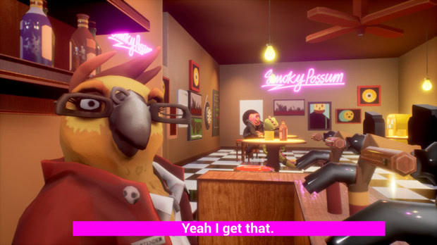 Karvainen matka kohti mysteerin ydintä tapahtuu piipahtelemalla muutamissa pienehköissä ympäristöissä, kuten Stonen ja Alexin hämyisen kotoisassa kantakapakassa sekä paikallisten krokotiilien ja brittiläisten ketunketkujen suosimalla utuisella tanssiklubilla. Kokonaisuutena ympäristöjä ja hahmoja on kitsaasti, ja pelaaja viettää suurimman osan aikaa vieraillen aiemmin tutuksi tulleissa paikoissa. Varsinainen pelaaminen keskittyy hahmojen väliseen dialogiin. Pelaaja voi satunnaisesti ohjata keskustelua maltillisempaan tai äkkipikaisempaan suuntaan, mutta juonen kannalta kaikki tiet johtavat samaan lopputulokseen.