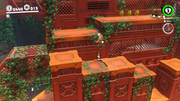 Etenemisen ohella Super Mario Odysseyssa on hauskaa myös jäädä paikoilleen ja katsoa taaksepäin vanhoille alueille uusien löydösten toivossa. Ja löydettäväähän riittää, sillä tarinan edetessä uusille alueille myös vanhoihin maisemiin saattaa avautua uusia piirteitä ja kerättäviä kuukiviä. Nintendo onkin käyttänyt kuukivien kätkemiseen samankaltaisia oppeja kuin The Legend of Zelda: Breath of the Wildin salaisuuksissa. Pelaajat opastetaan uusiin seikkailuihin hyvin usein pelkkien visuaalisten vihjeiden avulla, jotka tunnistaa lähes alitajuisesti maailman uumenista. Usein pelaajien eteen heitetään muun muassa 8-bittisiä tilanteita pikselimäisinä seinämaalauksina tai Super Mario 3D Worldin kaltaisia kolmiulotteisia hyppelyhaasteita erikoisalueina.