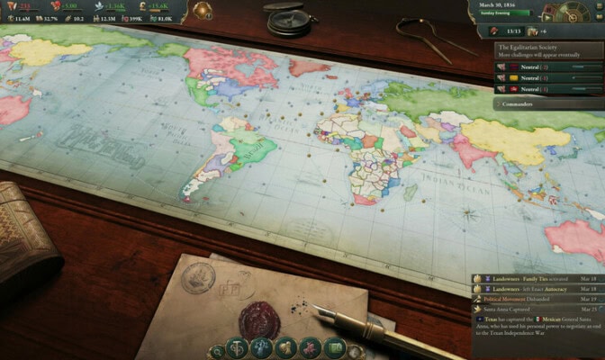 Crusader Kingsien ja aiempien Victoria-pelien hengessä pelaaja voi hypätä minkä tahansa vuonna 1836 olemassa olleen valtion puikkoihin ja luovia sitten eteenpäin muutosten vuosisadan aikana. Kaikki maat koostuvat populaatioista, jotka tarkoittavat yhteen paikkaan ja sosioekonomiseen lokeroon sidottuja ihmisryhmiä, kuten vaikka eteläruotsalaisia työläisiä ja tehtaanomistajia.