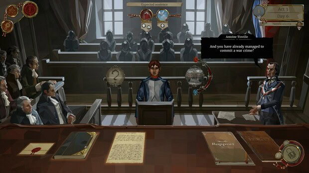 Peli on kumma risteytymä dialogipainotteista visual novel -tyylistä tarinaa, strategiapeliä ja managerointia. Paljon vietetään aikaa oikeussalissa, jossa haastatellaan syytettyjen lisäksi todistajia tavalla, joka tuntuu aluksi hieman Ace Attorney -henkiseltä. Nopeasti tajuaa kuitenkin, että tuomio jaetaan harvoin syyllisyyden perusteella. Oleellisempaa on se, kuka tykkää mistäkin tuomiosta. Kansa, vallankumoukselliset puolueet, aateliset ja jopa tuomarin oma perhe odottavat tietynlaisia tuomioita. Jos kaikkia ei pidä tyytyväisenä, guilletten yksiterä ajelee pian omaa partaa. Niinpä pelaaja huomaa kysyvänsä valikoimasta vain kysymyksiä, jotka johtavat kohti haluttua tuomiota.
