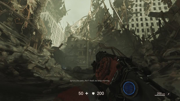 Vielä vaikuttavampaa on se, että sulavuudesta ei makseta suunnatonta hintaa. Tietenkin Switch-käännös näyttää isoveljiensä rinnalla vaisummalta, mutta natsimurhan keskellä muutoksia ja leikkauksia ei juuri huomaa. Television kautta pelattuna Wolfenstein II näyttää hyvältä, vaikka resoluutiota on selvästi laskettu. Suurissa ja avoimissa kohtauksissa huomaa, että horisonttia kohti mentäessä yksityiskohtia karsitaan vauhdilla, mutta onneksi suuri osa pelistä sijoittuu rajoittuneemmille alueille.