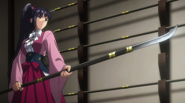 Kabaneri of the Iron Fortressissa aatelisneito Ayame kiskaisee seinältä naginatan, kun neuvottelut kuumenevat liiaksi.