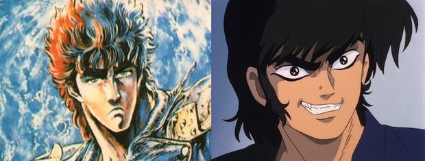 Tätä kautta kulmakarvojen yhdistäminen vakavuuteen ja miehekkyyteen päätyi myös piirroshahmojen pariin. Fist of the North Starin päähenkilö henkilöityy niin paljon kulmakarvoihinsa, että sarjaa parodioidessa keskitytään toisinaan jopa ihan vain niihin. Go Nagain teosten, kuten Devilmanin, päähenkilöillä on usein paitsi pulisongit myös vahvat kulmakarvat.