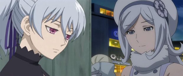 Vasemmalla Darker than Blackin ilmeetön nukketyttö Yin, syntymänimeltään Kirsi. Oikealla Gundam Build Fightersin Aila Jyrkiäinen, jonka vakava ilme katoaa vain ruoan ääressä.