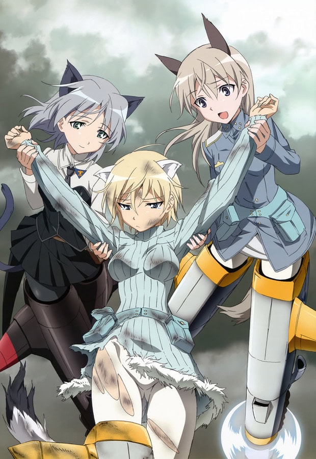 Strike Witches. Nämä kolme hahmoa perustuvat Lidija Litvakiin (vas.), Nils Katajaiseen ja Ilmari Juutilaiseen.