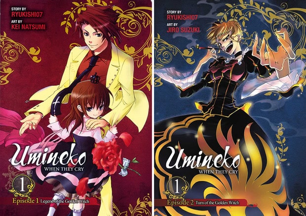 Uminekon päätarina ilmestyi vuosina 2007-2011, ja Higurashin tapaan se koostui ensin neljästä ”kysymysosasta” ja sitten neljästä ”vastausosasta”. Sarjan vielä ilmestyessä iso osa sen viehätystä oli sen faniyhteisö, joka yritti netissä arvuutella mysteerien ratkaisua – olennainen osa kokemusta kun oli pakollinen puolen vuoden odotus ennen sarjan seuraavaa osaa.