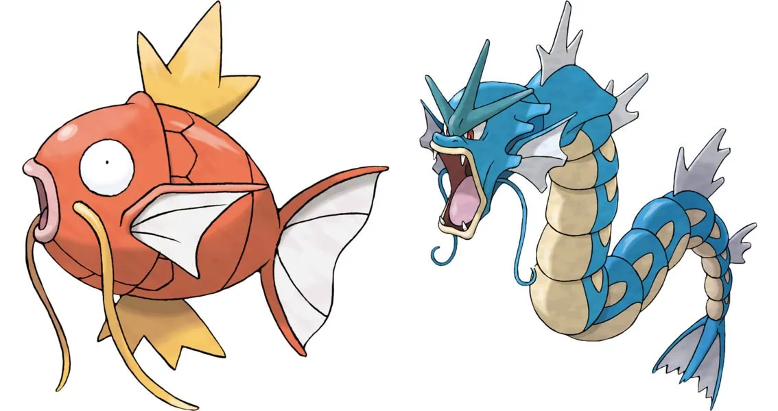 Kaikki alkuperäisiä pelejä pelanneet oppivat joko koulun välitunneilla tai viimeistään strategiaoppaasta, että täysin hyödytön Magikarp-karppi kehittyy tasolla 20 massiiviseksi Gyarados-vesilohikäärmeeksi. Aluksi tämä saattaa tuntua vain karmiselta kostolta – ensimmäisen Magikarpin saa peleissä todennäköisesti epäilyttävältä huijarilta, joka myy sellaista rahaa vastaan ennen kuin pelaaja oppii, että samanlaisia saa ongittua ilmaiseksi viereiseltä laiturilta.
