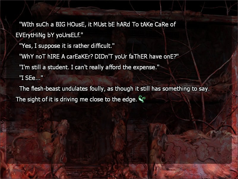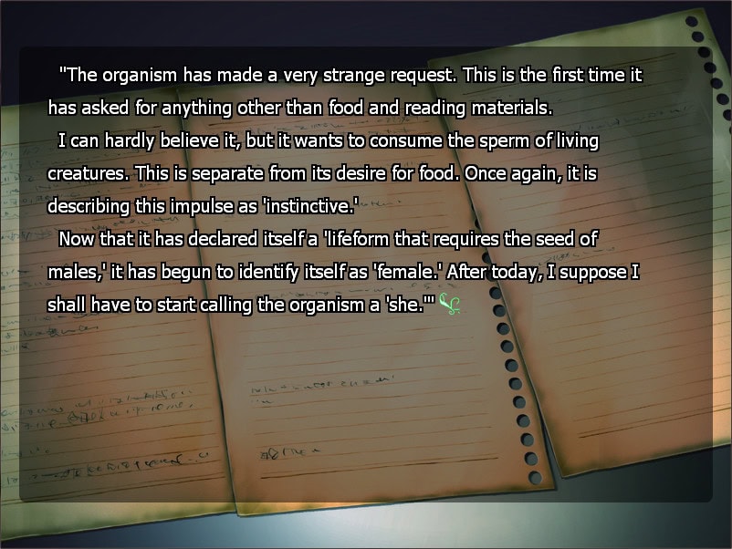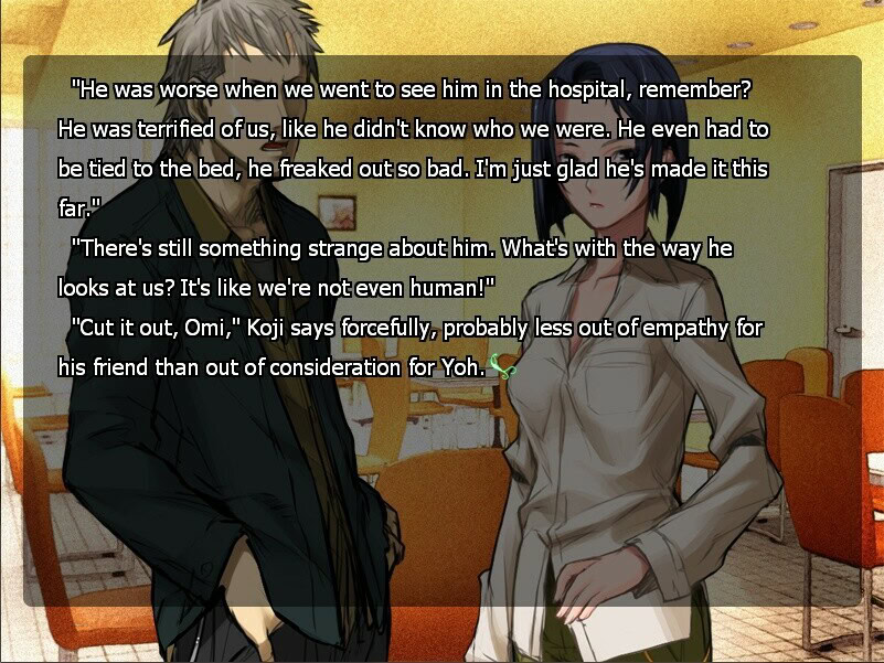 Asiasta voi esittää argumentteja puolesta ja vastaan. Toisaalta voi sanoa, että vuonna 2003 jokainen visual novel joutui vielä hankkimaan K18-lätkän, jotta asiakkaita riittäisi. (Tämän totuuden mursi vasta Clannad vuonna 2004.) Toisaalta taas seksuaalisuus on yksi keskeisimpiä body horrorin rakennuspalikoita. Ja niin ikään toisaalta… kyseessä kuitenkin on, kuten aiemmin sanoin, pohjimmiltaan rakkaustarina.