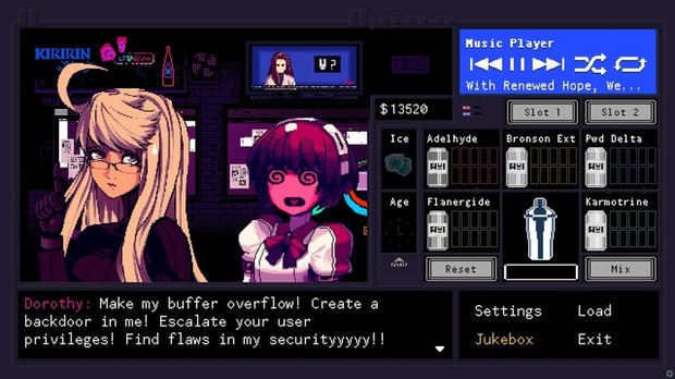 Esimerkiksi VA-11 Hall-A:sta löytyy anonyymejä keskustelulautoja ja itseään livestriimaavia tyttöjä, mutta ulkoasultaan ja käyttöliittymältään se on PC-98-aikakauden pelien yksityiskohtaisen pikseligrafiikan inspiroima. (Täällä muutama esimerkki.)