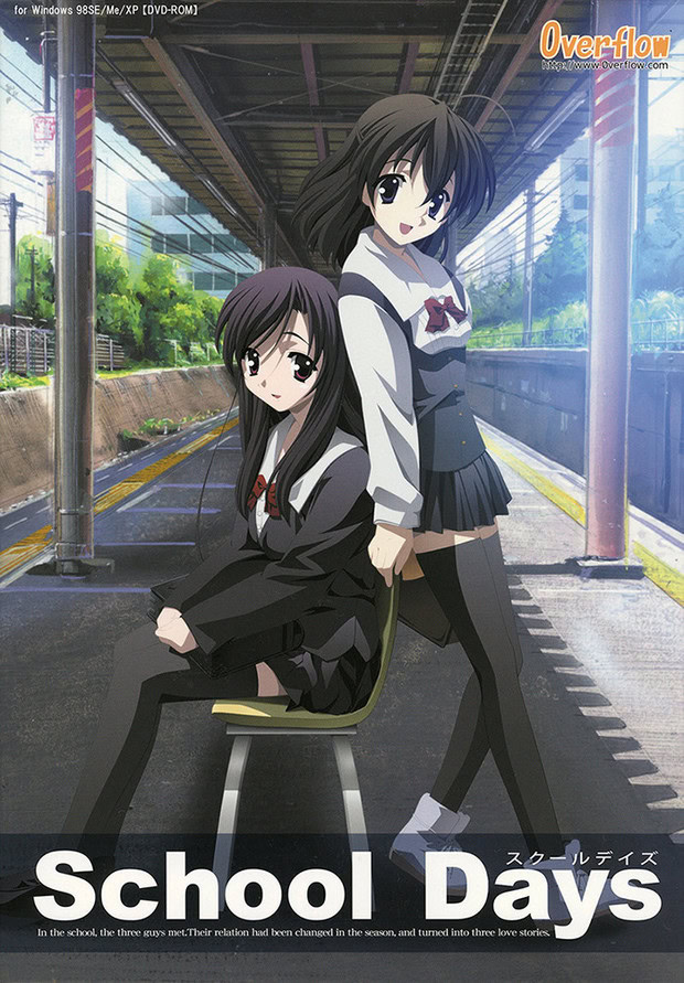 (Länsimaiseen tietoisuuteen School Days nousi vuoden 2007 animesovituksensa kautta. Se synnytti erään ikimuistoisen meeminkin, kun viimeinen jakso jätettiin kokonaan esittämättä siksi että muuan alaikäinen tyttö teki samalla viikolla kirvesmurhan.)